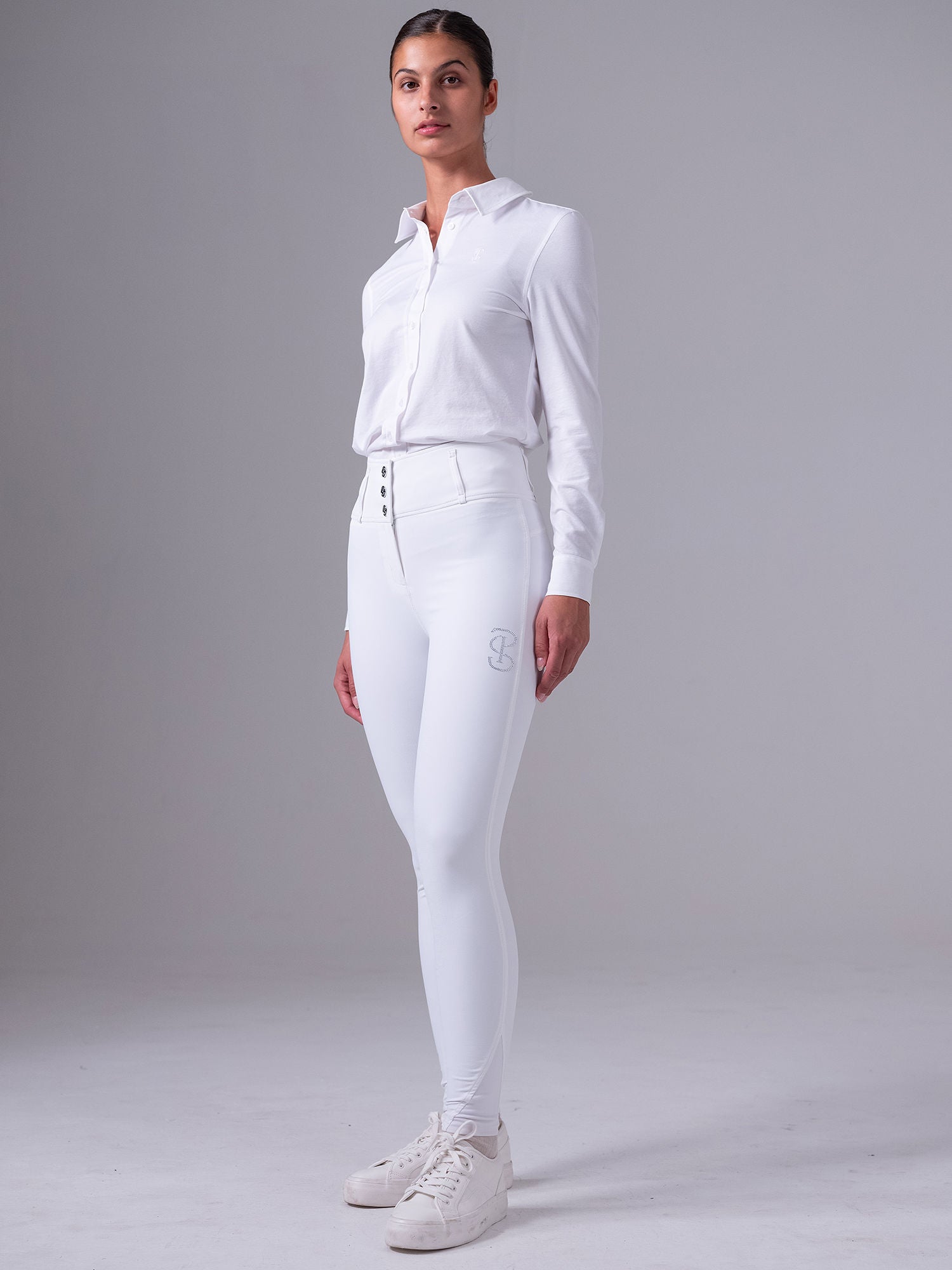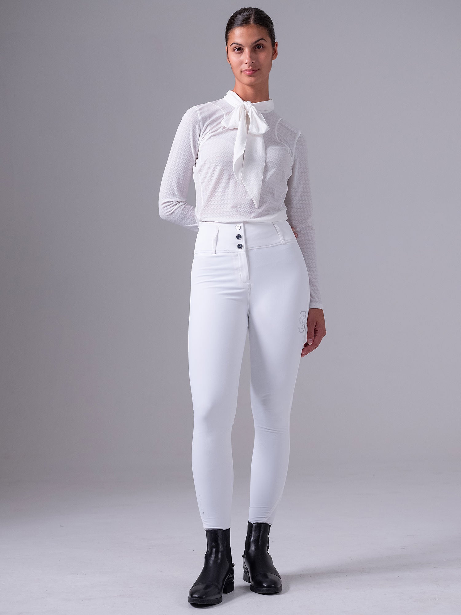 High-waisted full-grip breeches featuring high compression and body cooling effect.