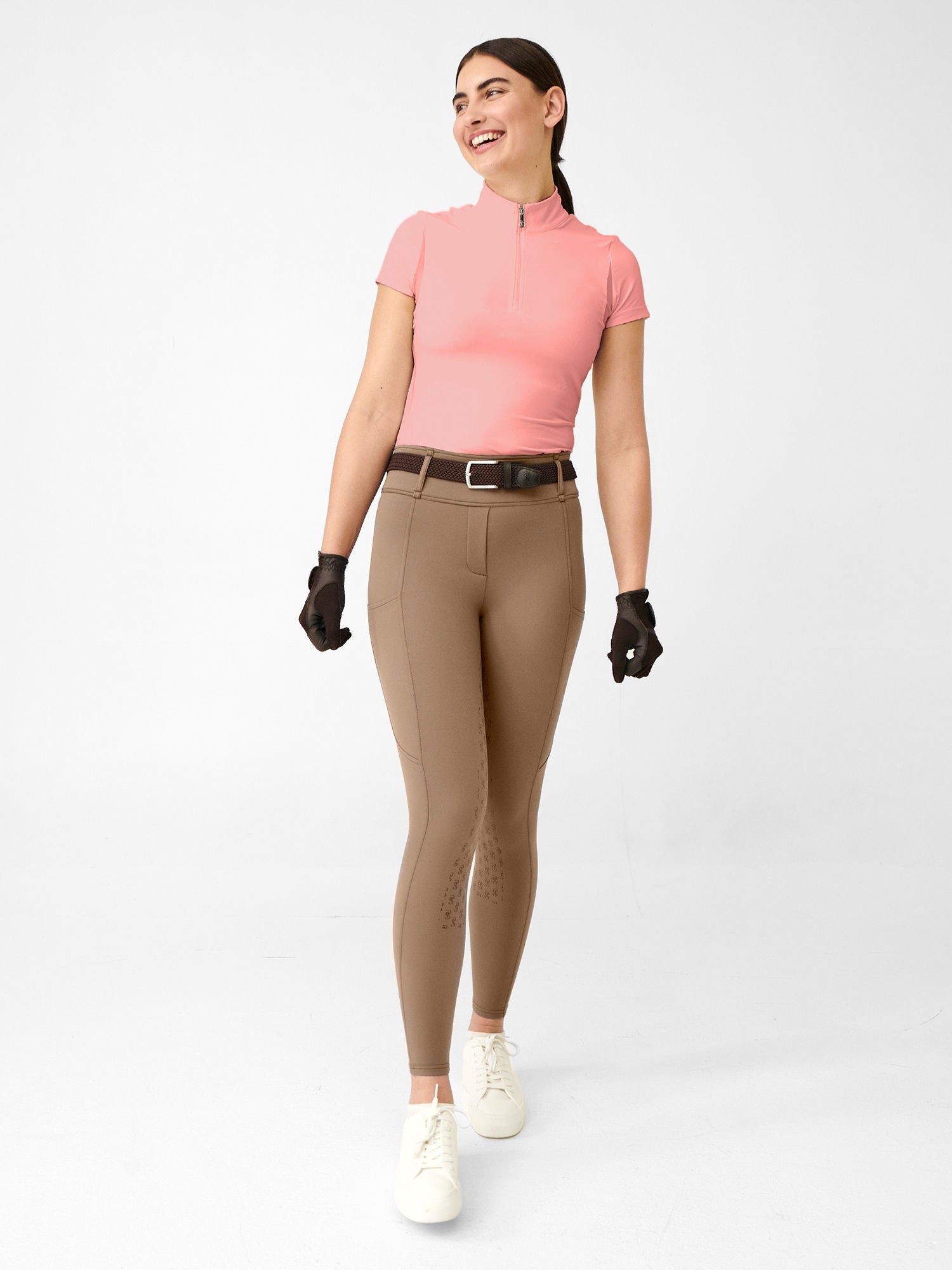 Short sleeved elastic top with in a functional polyamide and elastane blend.