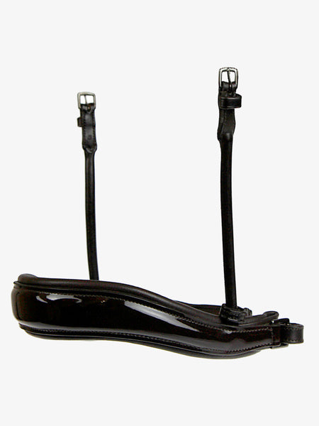 The wide, anatomical noseband is designed to leave the cheekbones and nerve endings free by being swept up and extra wide. The noseband is provided with very soft padding to prevent pressure and chafing around the horse's jaw. We have chosen the pull-back strap as the padded cushion underneath always remains centered when you tighten the noseband, whether you use the outermost or innermost hole.