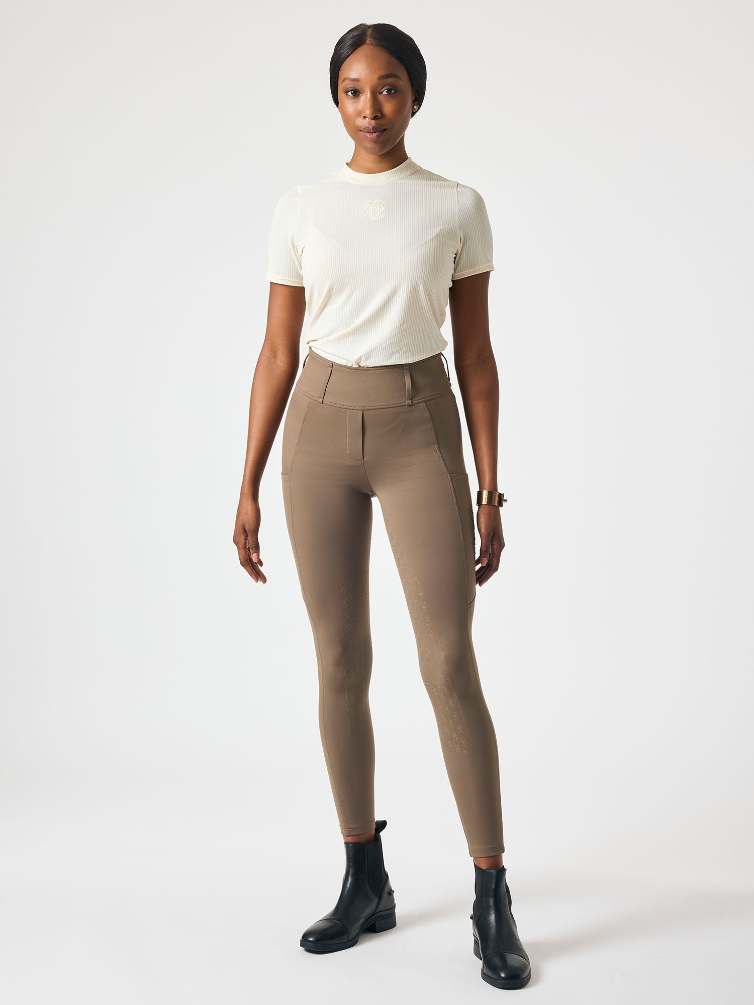 New generation of our best selling half grip riding tights designed as high-waisted with a wide shell-fabric waistband for perfect fit and comfort. Crafted in a soft, slightly shiny technical fabric delivering superior elasticity and breathability.
