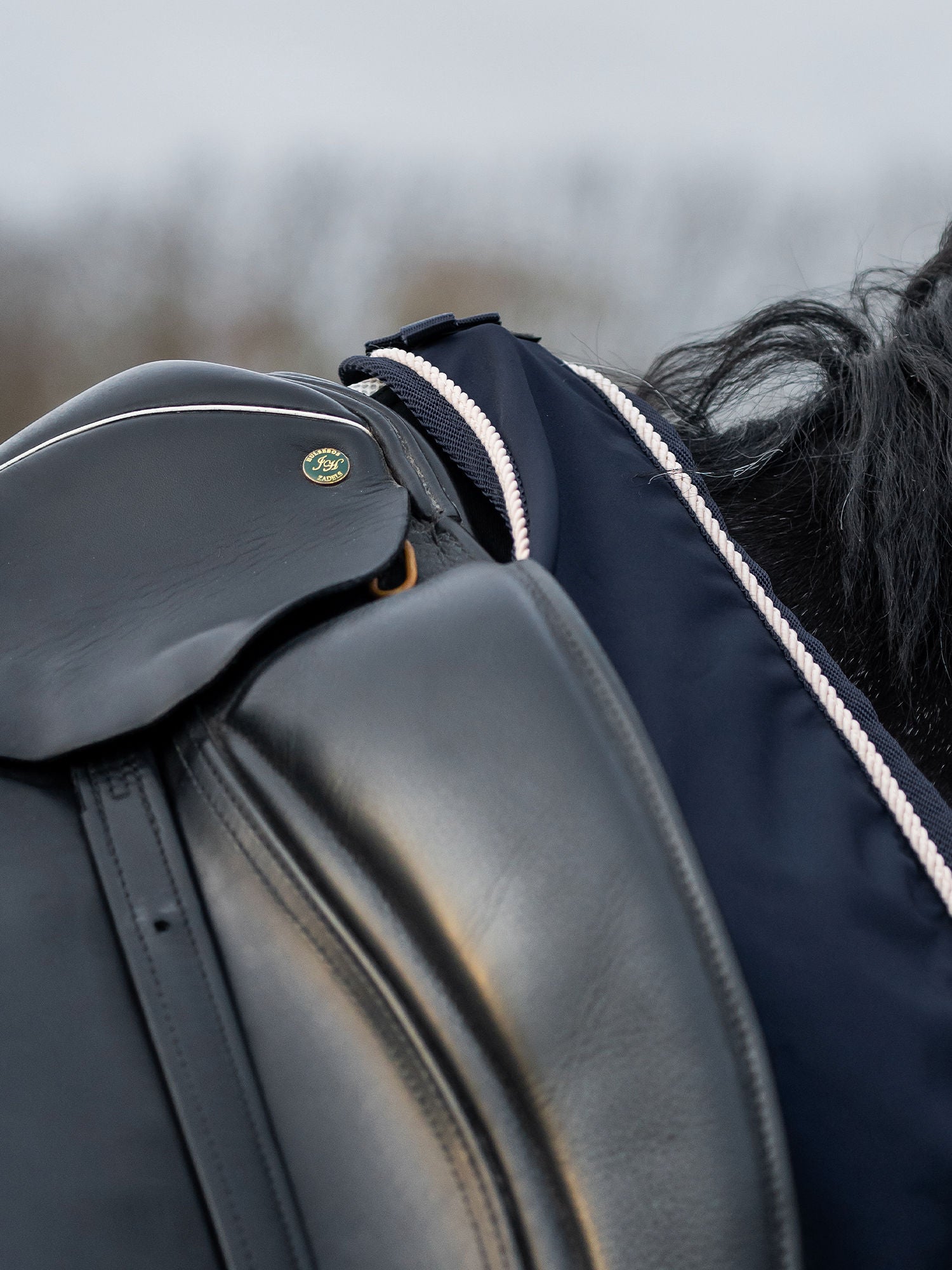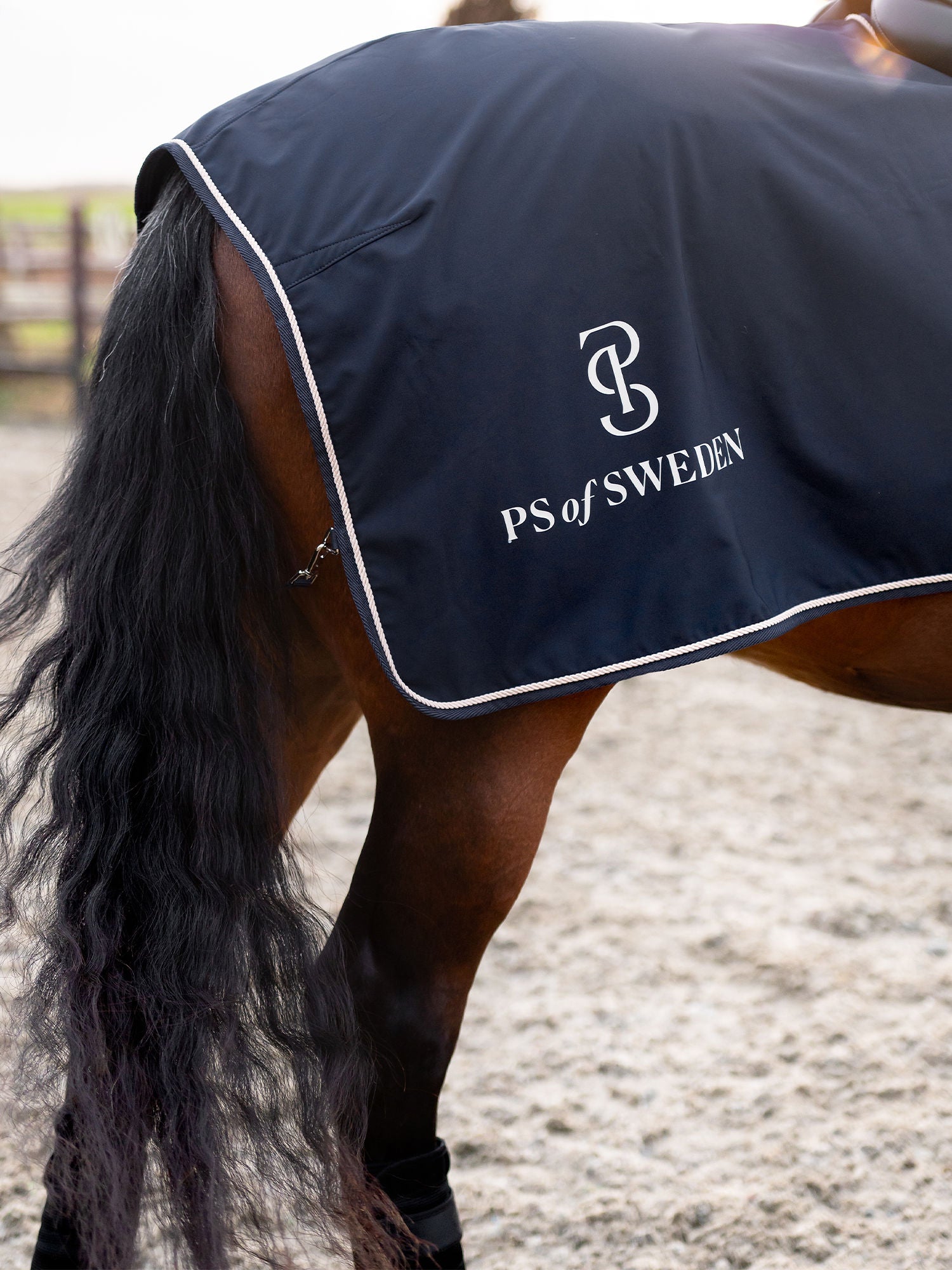 Exercise rug for your horse, crafted in waterproof and breathable fabric. Adjustable tailband and velcro closing tab for extra securityThis ultra-soft and lightweight exercise rug is perfect for keeping your horse comfortable in cooler weather without risking them becoming overheated. It's crafted in waterproof and breathable softshell fabric with excellent wicking properties, as well as completed with matching velcro closing tab at the top and adjustable tailband for extra security. The PS monogram print on the back and Herringbone binding around all edges, in off white, adds a subtle hint of style.