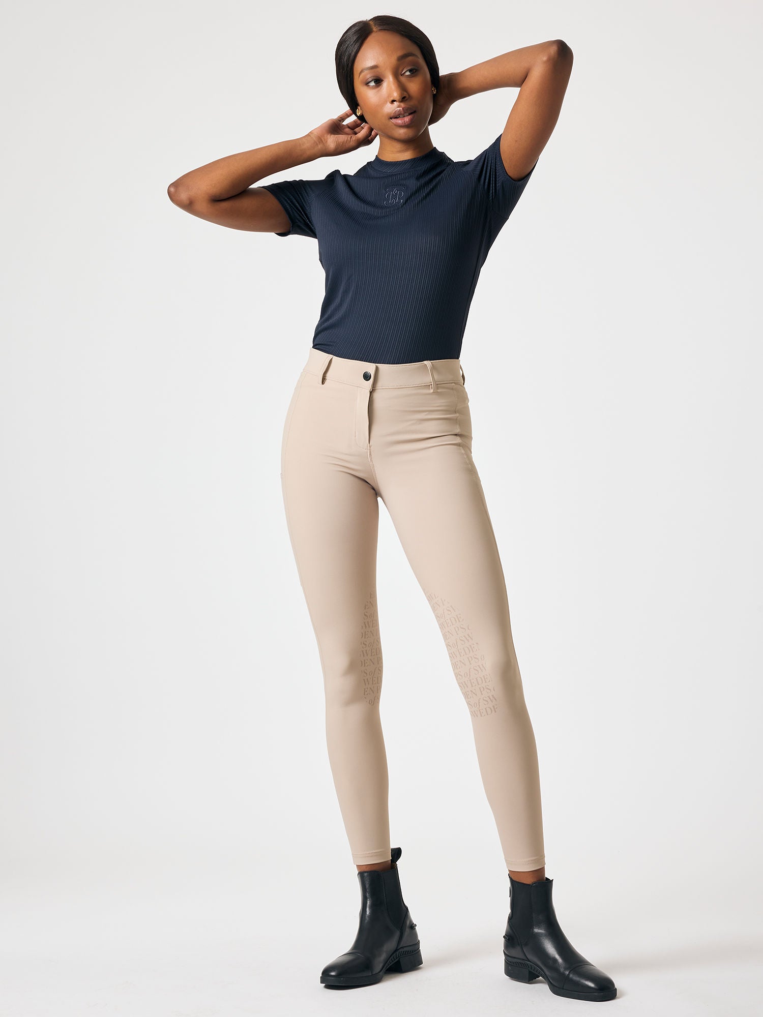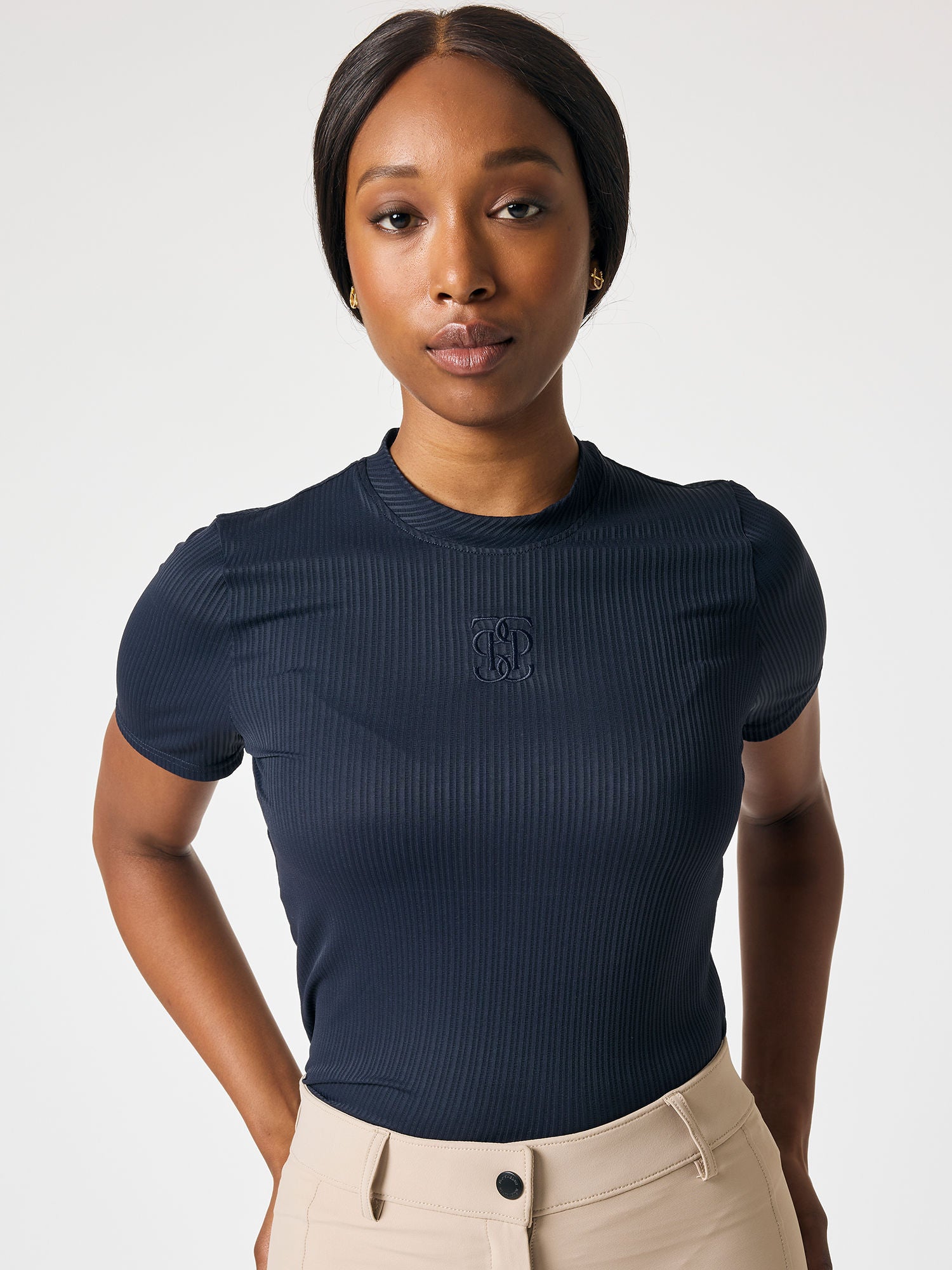 The soft, breathable material provides superior ventilation, keeping you cool and comfortable during long training sessions or show days. A tone-on-tone embroidered PS logo adds a touch of elegance, giving the shirt a sharp, professional look that stands out in the dressage ring or show jumping arena.