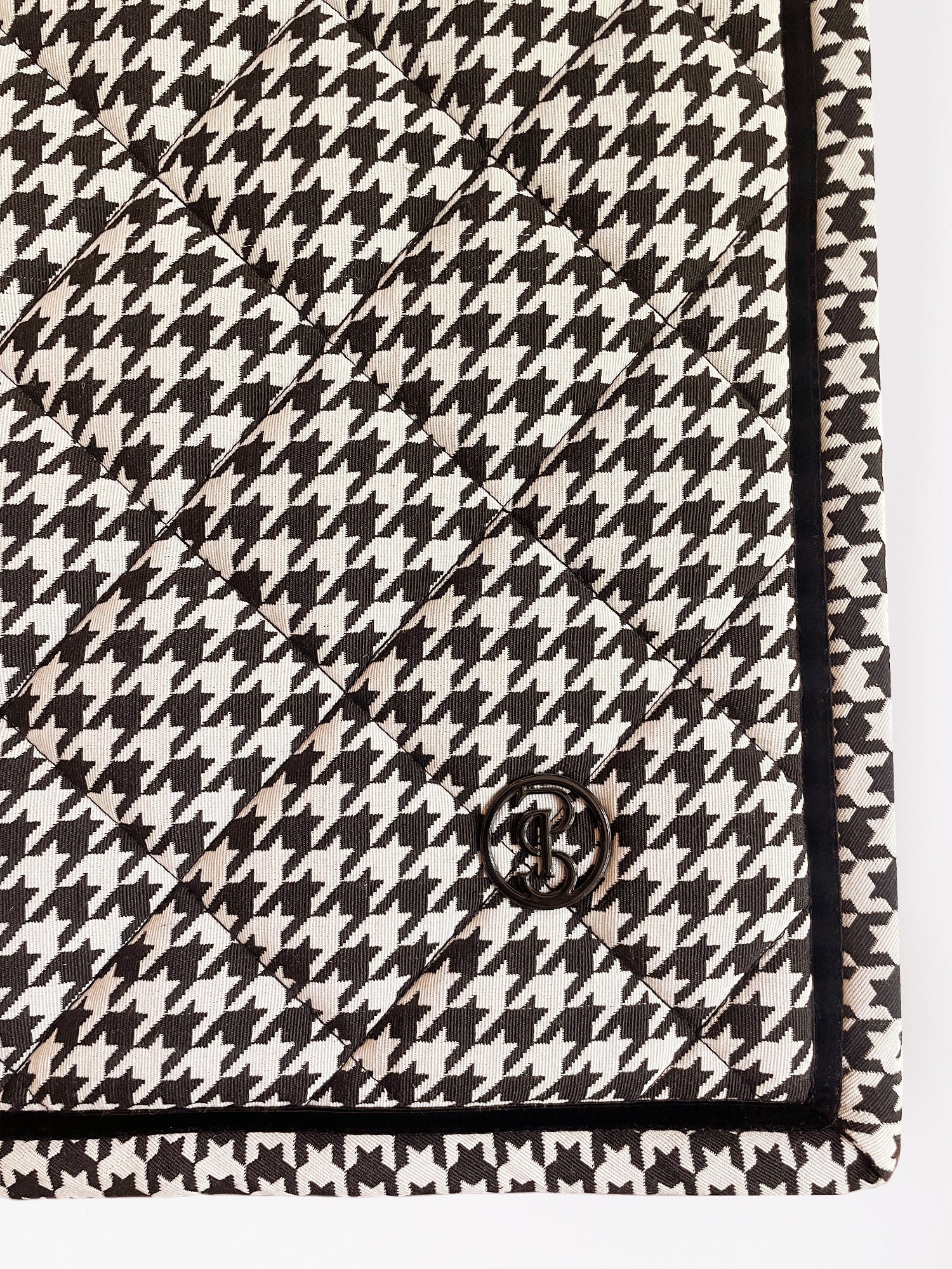 Our limited houndstooth saddle pad combines timeless heritage with modern equestrian needs. We sought to create something that not only reflects the confidence of a rider but also enhances their experience in the saddle. With a focus on comfort, fit, and durability, the design process involved selecting materials that offer both performance and a refined aesthetic.