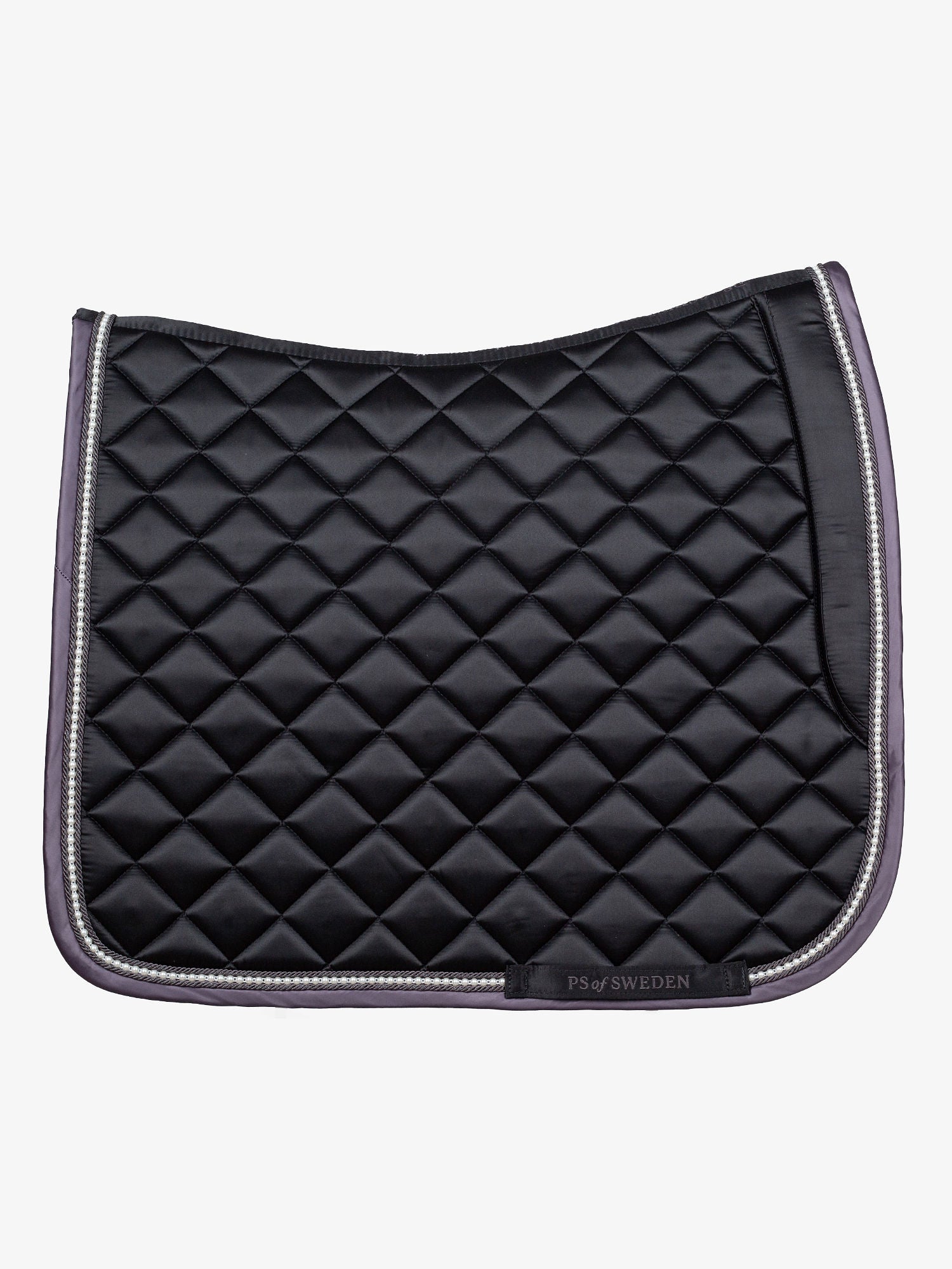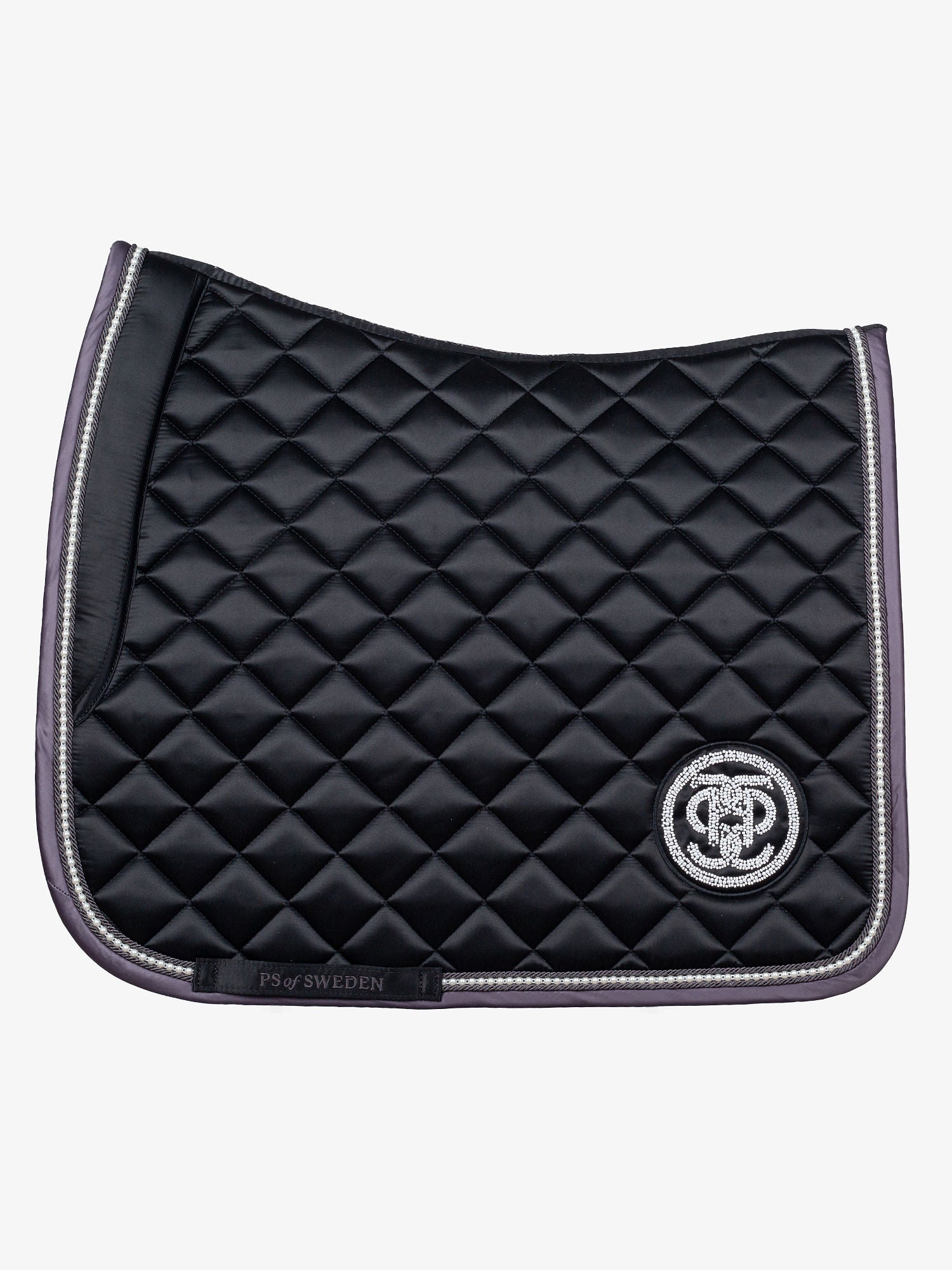 Saddle pad with a pearl monogram logo and exclusive pearl trim, made from durable satin. Anatomically designed and finished with a unique PS quote along the spine.