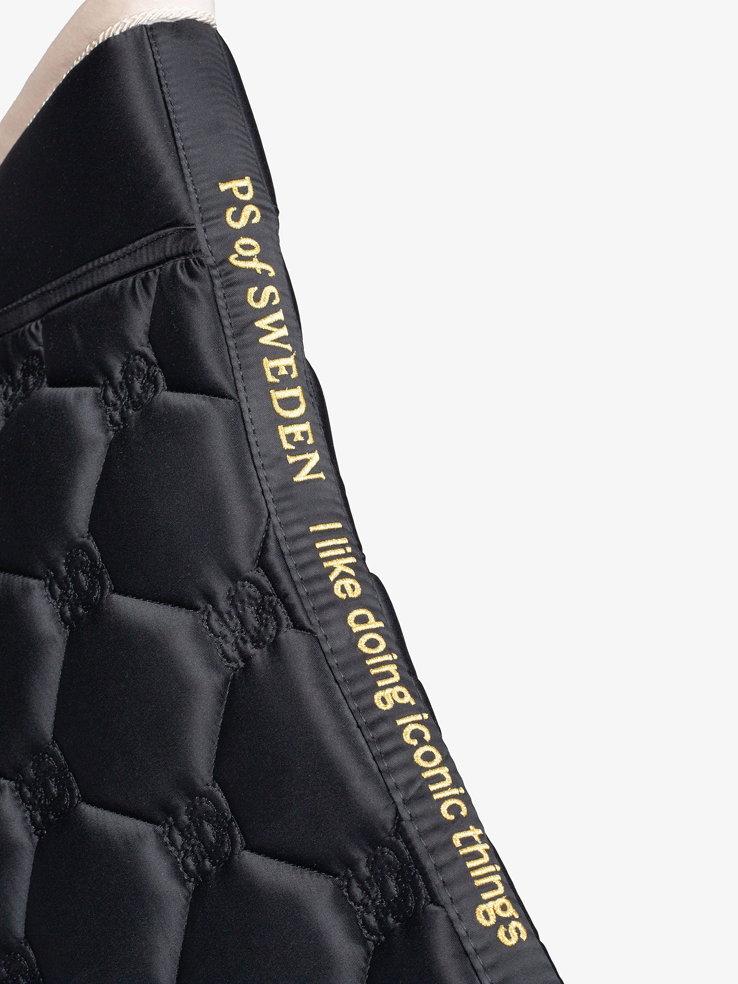 Anatomically designed saddle pad composed for the horse's well-being. Made from soft satin with velvet-edged trim to prevent chafing. Features a quick-drying lining, PS Monogram quilting, and decorative piping.